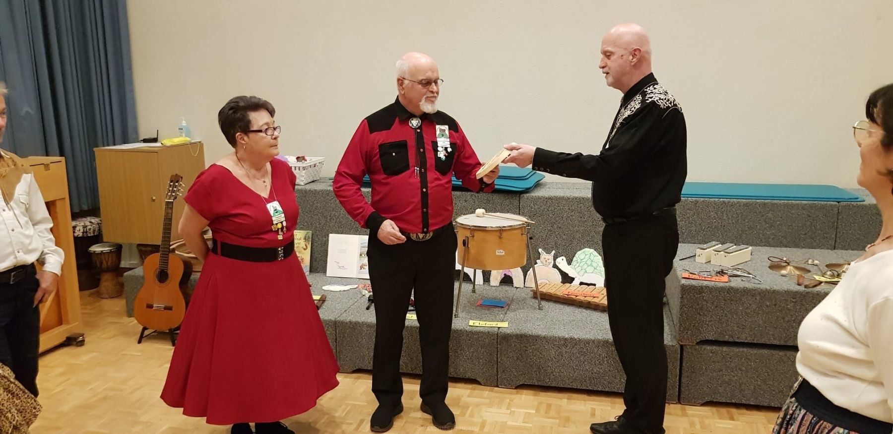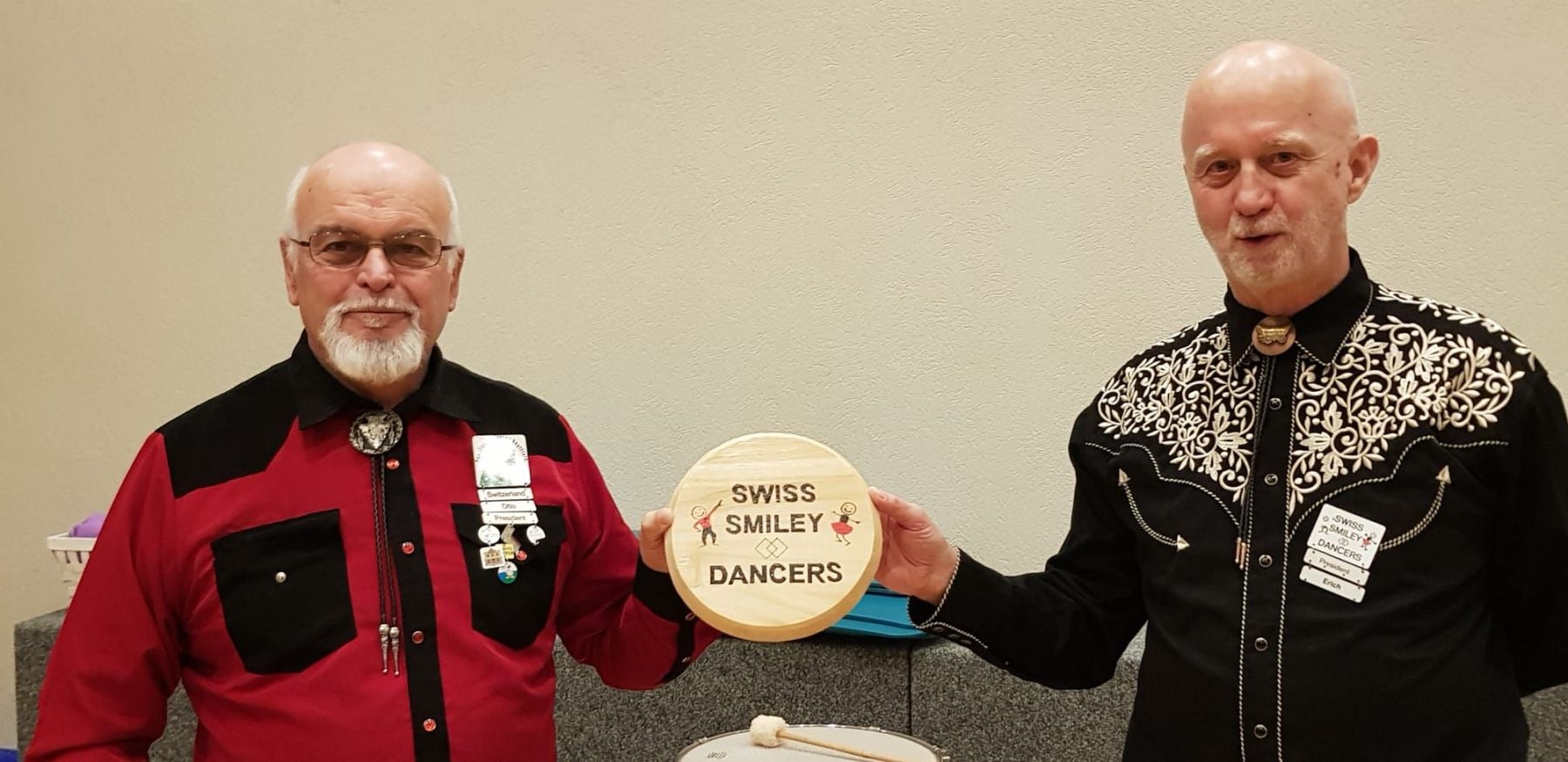 Die Caller Christian und Andreas nutzten den grossen Rahmen, um sich bei Francois für seinen jahrelangen Einsatz für die Squaredance-Clubs in der Schweiz zu bedanken.